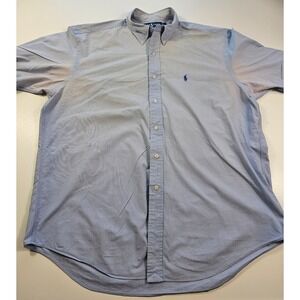 ralph lauren Blake nylon blend short sleeve light blue button up Large L *FLAW*-