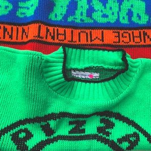 rare 90s Teenage Mutant Ninja Turtles neon sweater: “PIZZA POWER”!