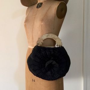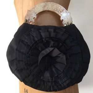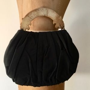 raw silk evening black silk purse w/ stone handle