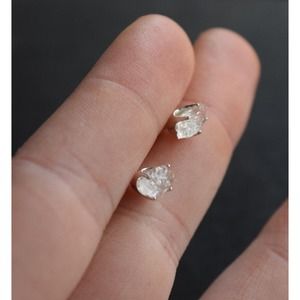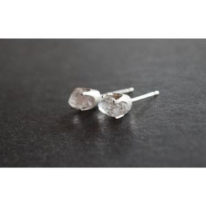 raw stone earrings, natural gemstone studs in sterling silver, crystal e…