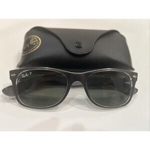 The Ray-Ban RB2132 New Wayfarer sunglasses in Gray Black are a stylish unisex accessory that features a classic gray frame with black lenses. These sunglasses are designed to provide both protection and fashion, making them a versatile choice for any outfit or occasion. With the iconic Ray-Ban brand, you can trust that you are getting a high-quality and timeless product that will elevate your look.