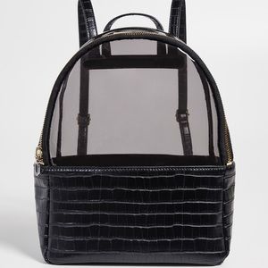 BRAND NEW! Cute spring/summer backpack to show off all of your stylish accessories. Top half of the backpack is clear and see-through, bottom half is covered with white reptile print.
