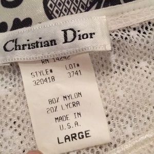 β¨ Vintage Christian Dior polka dotted mesh tee shirt. Color is like an eggshell white/off white. Size Large. Approx. measurements taken laying flat and relaxed: bust 38", length from underarm 14.5", length shoulder to hem 23". This fabric is very stretchy and delicate. 80%nylon 20% Lycra. Made in USA πΊπΈ βοΈ only defect is the fabric has a rubber/sticky feel. Maybe from the nature of the Lycra over time. Has been hand washed in cold water.