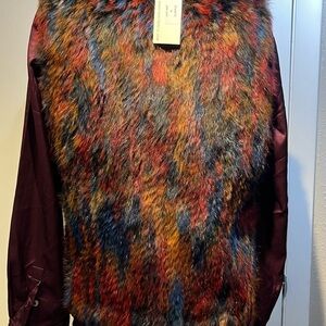 Rabbit fur multicolored vest in gorgeous purples pinks truly remarkable a must have. dress up for a dinner date or a formal gala in these combo and pair it with black slacks. NWT the vest is Adore and the blouse is Paparazzi