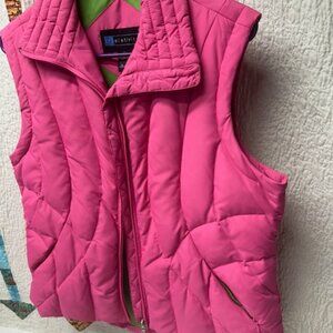 The realativity Quilted Puffy Vest in woman's size medium is a stylish and comfortable outerwear piece perfect for the colder months. Made from polyester, this vest features a puffer jacket style with a pink color, making it a fashionable choice for women. The regular fit and medium size ensure a comfortable and flattering silhouette. Perfect for layering over your outfit to stay warm and chic during the colder weather.