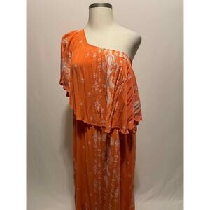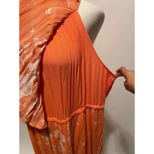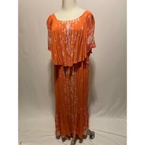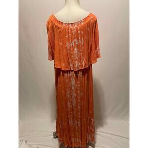 Maxi gauze sleeveless with overlay elastic waist with white gray and silver print. Tiny silver studs and silver foil paint elastic neckline and waist.