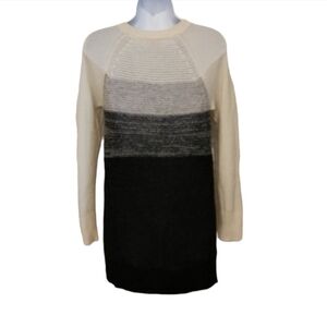 This hi/low has just the right amount of wool and cashmere blend for warmth and softness. Side slits at the hem and the longer length in the back give this sweater a sophisticated look. Runs a bit oversized, will fit XS/S/M depending on how form fitting you want to wear it.