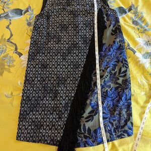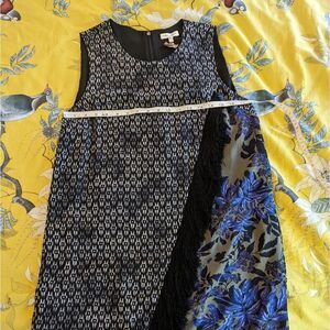 rebecca Taylor blue/black silk floral geometric pattern fringe dress sz 12 euc