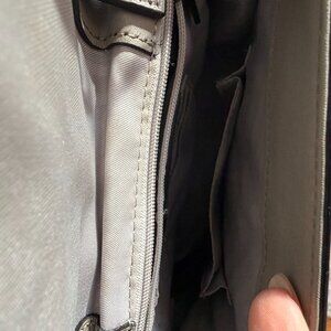 Edgy meets elegant! 🩶✨ This stunning Rebecca Minkoff Darren Messenger bag is the perfect blend of bohemian cool and city chic. Crafted from soft, pebbled leather in a versatile taupe/grey hue, it features gorgeous silver and gold-tone stud detailing that adds just the right amount of attitude.