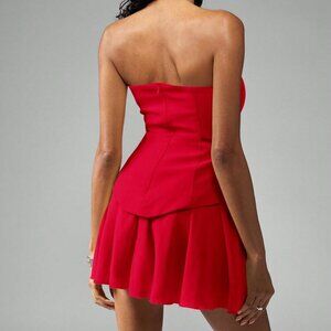 red StraplessTailored Fitted Bodice Pleated chiffon Skirt Mini cocktail dress
