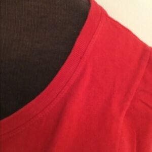 Gently used no stains or tears just a tiny hole on the collar area from the price tag large red approximate pit to pit 18 1/2 shoulder to hem 23