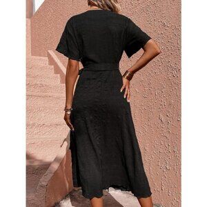 red boho Puff Sleeve Knot Side Wrap Dress midi 💙