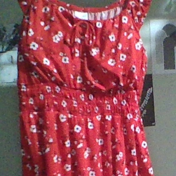 brand no boundaries, side 3-5 teen, red floral dress, soft streaky material