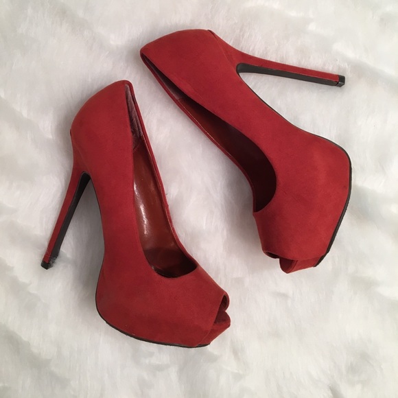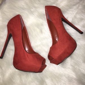 Rusty red peep toe platform heels heel is 5.5 inches with a 1 inch platform