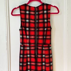 Red plaid midi dress. Perfect by itself for some summer grunge vibes, or can layer with a turtleneck, tights, and combat boots for chillier weather.