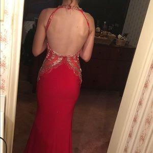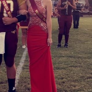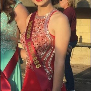 red with train, fits tight, sequined, size 4, worn once, will negotiate