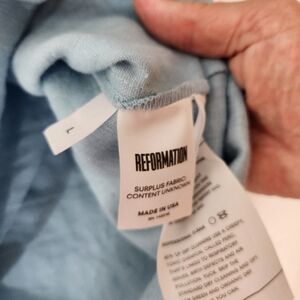 reformation off sldr tie sleeve blue linen top wms sz l blue cottagecore prarie