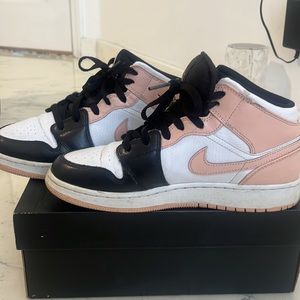 air jordan 1s (GS), crimson tint. real. these shoes are super cute and tie an outfit together. These are in good condition all they really have are creases but other than that they are good
