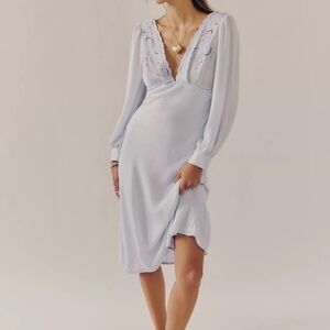 reserved Free People Powder Blue Arabella Lace Trim Midi Dress
