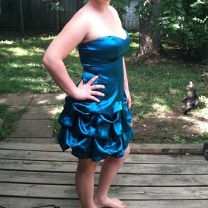 💕only worn once; to homecoming! beautiful and fun dress. about knee length(if your short😆)