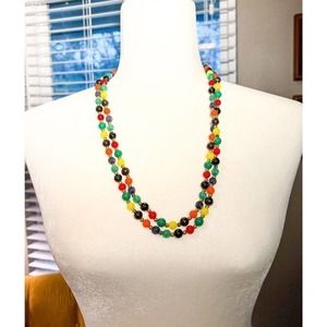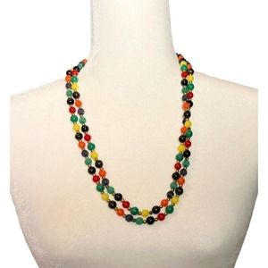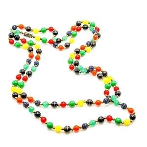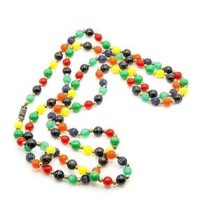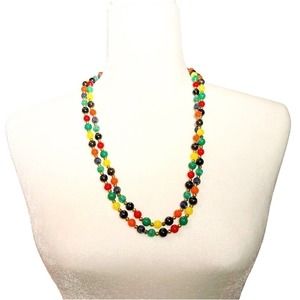 retro Rainbow 2 Strand Long Beaded Necklace Multicolor Box Clasp Retro 26 1/2"