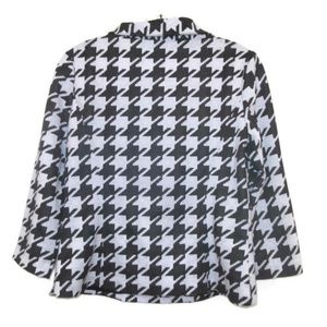 stretch grey gray black roll collar retro 1960s 60s mod top blouse dogtooth dogstooth plaid gingham 3/4 quarter sleeves short knit rayon spandex kenar pin up pinup