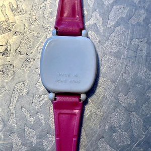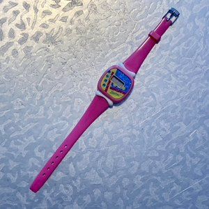 From the 80's or early 90's. Rescued from my childhood jewelry box. I've not yet checked if it'll work with a new battery. But still in good condition, very adjustable size, fits my skinny adult wrist.