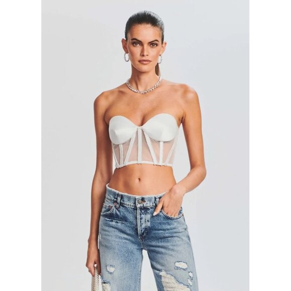 tags: revolve, designer, fwrd, crop top, bustier, corset, sheer, mesh, sexy, club, clubwear, bachelorette, birthday, vegas, miami, shirt, top, cocktail, disco, sparkle, bride, rhinestone, embellished, bling