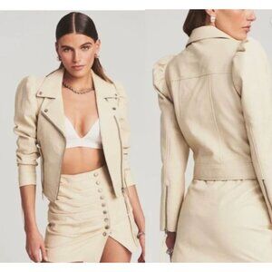 retrofete Lo Leather Biker Jacket Cream Womens Size Large
