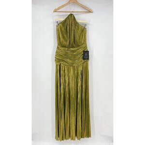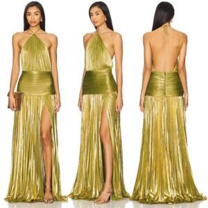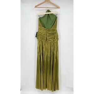 retrofete | NWT Thalia Dress in Metallic Peridot Green Pleated Halter Maxi S