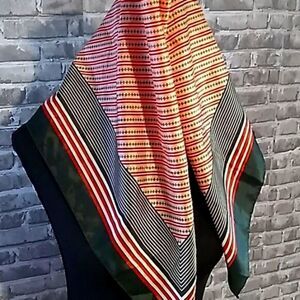 no tags 27" square scarf red cream dark green 70s vibes