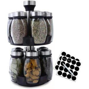 revolving spice rack organizer with 12 glass jars rotating countertop kitchen st