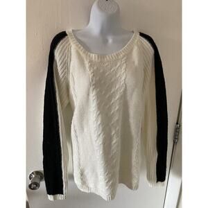 rhyme Ivory Sweater With Black Stripe Down Sleeves