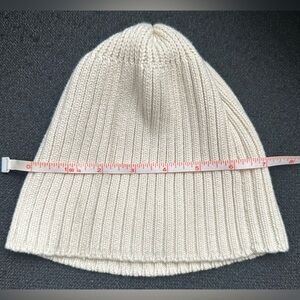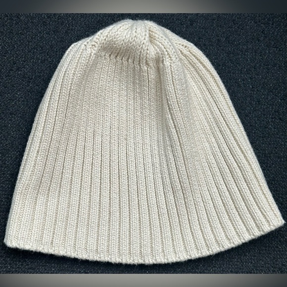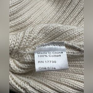 simple, soft ribbed knit beanie in a neutral cream tone. lightweight 100% cotton with a relaxed fit that works year-round.