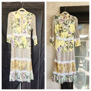Embrace elegance with the Floral Midi Dress. This stunning dress features a vibrant yellow and purple floral pattern, perfect for any occasion. Crafted with attention to detail, it offers both style and comfort.