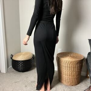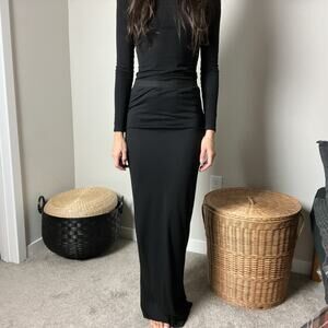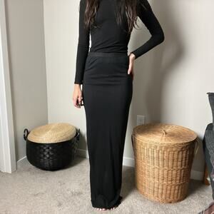 rick owens lilies black high waisted minimalist back slit maxi skirt