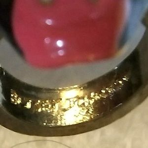 Betsey Johnson cow ring size 7. this is the cutest cow ring I have ever seen. black, white n.pink enamel. band has red hearts. eye r green with gold tone eye lashes. pink with gold tone ears. pink flower on head. ring is signed.