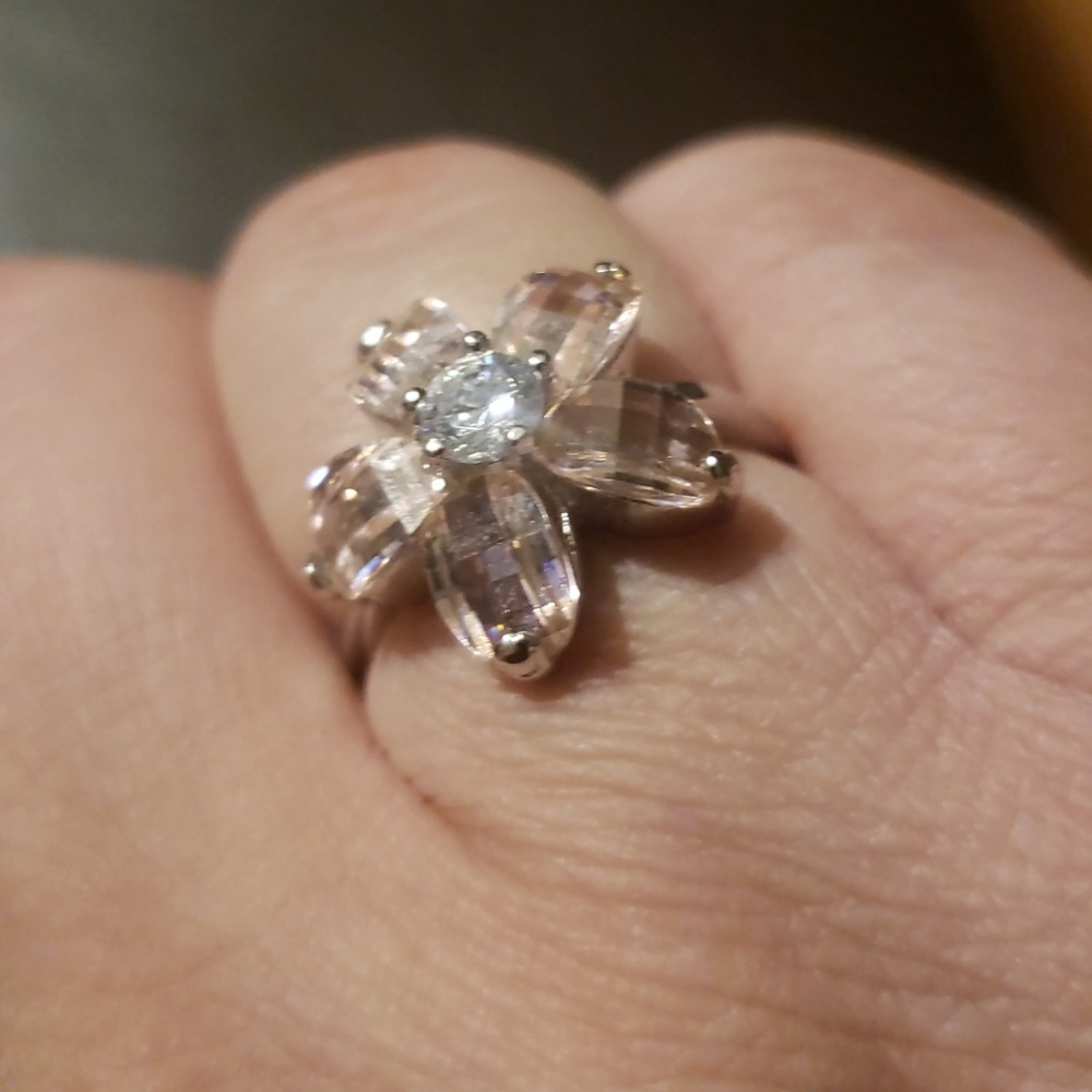 925 sterling silver ring with pink floral design & white stone center. Size 9 never been worn
