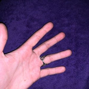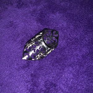 A silver ring that is super cute and has a cute embroidery with it. Will match with anything and goes great with a “going out” outfit.