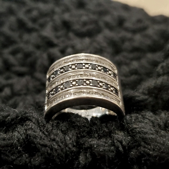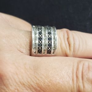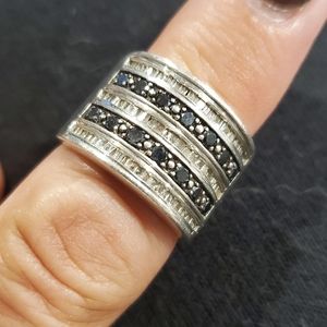 Beautiful womans silver diamond band. Size 6. Half ct black and white diamond chips. Worn a few times. Excellent condition.