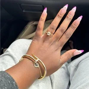 18k gold plated ring, non tarnish small rectangle stone simple style. in a size 6, great condition bought for a trip didn’t want to wear real engagement ring