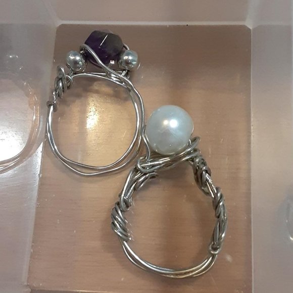 rings are a size 7. On the left is Amethyst, on the right is a pearl.