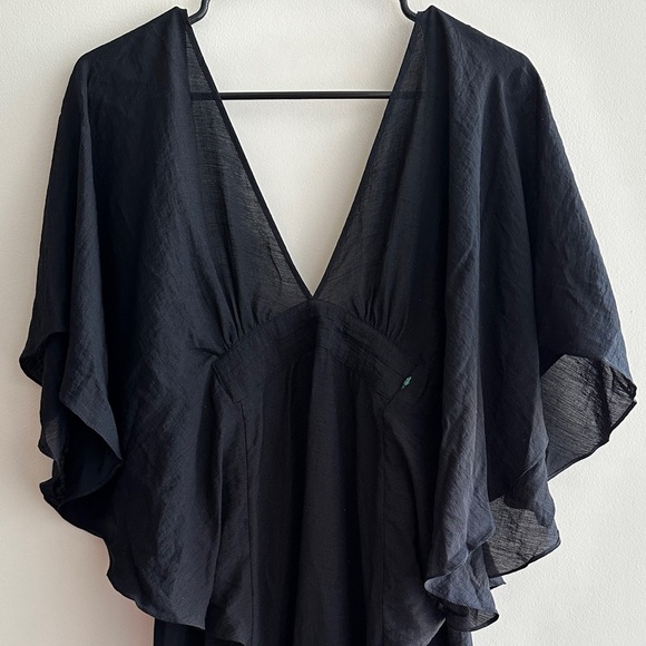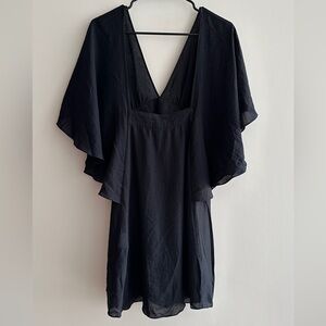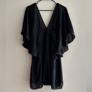 roberio sampaio Black Flutter Sleeve Linen Dress, Black Beach Coverup