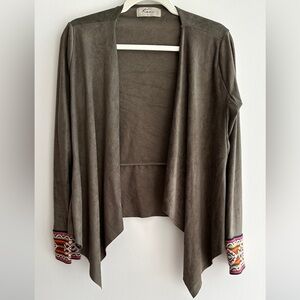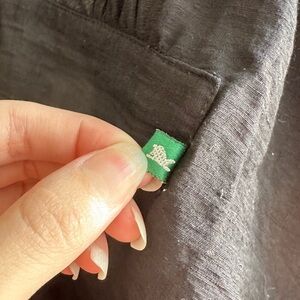 This is a Brazilian designer, roberio sampaio. The dress is a made to look like linen as a viscose and algodao blend. The silhouette is a mini dress with a deep V-neck and flutter sleeves. The back is fairly open and dips lower than the front. Great vacation dress for out to dinner or used as a beach coverup. The size on the label is P, which equates to US size Small (4-6).