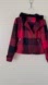 | rock & republic - cropped buffalo check hooded moto jacket - small |