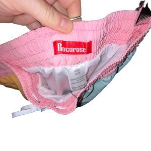 rocorose NEW NWT pastel patchwork swimming trunks bathing suit M