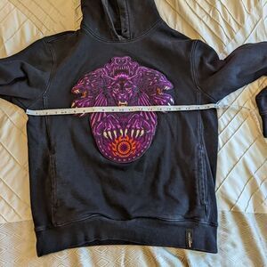 roku studio rise of the wolves black hoodie sz s purple wolf applique euc
