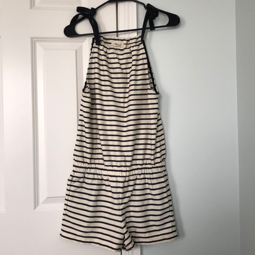 striped romper with tie straps