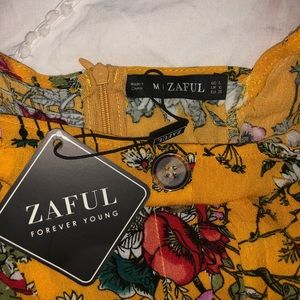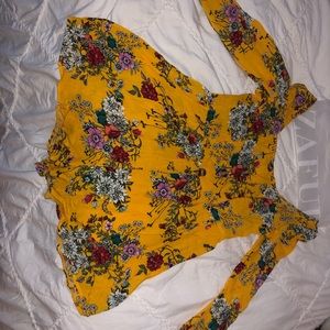Really pretty romper! yellow with flowers. It’s brand new, never been warn, still has the tags & original packaging. it’s just a little big on me, but super flattering & i know someone else could get great use out of it!!