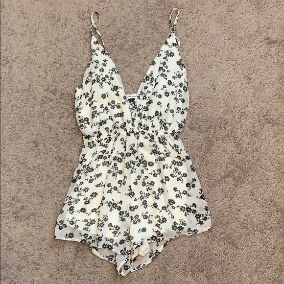 This is so cute and so easy to dress up or down. white with black flowers. A little low cut in the front but cute with a black bralette.